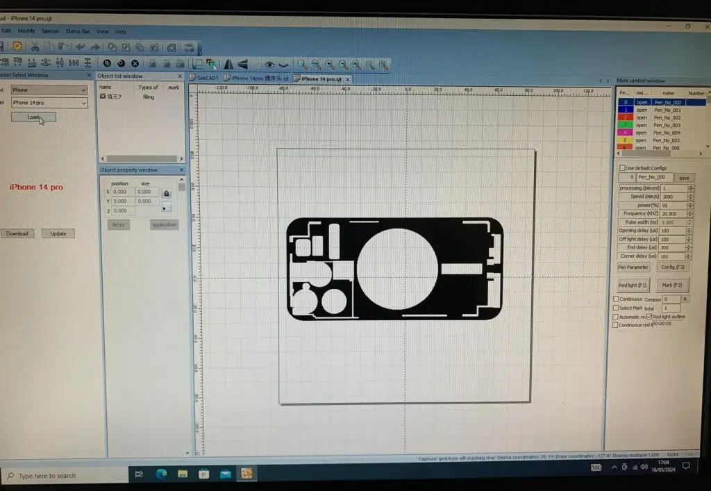 Our laser machine in action burning the paint and glue underneath the broken back glass of an iPhone XS-MAX.